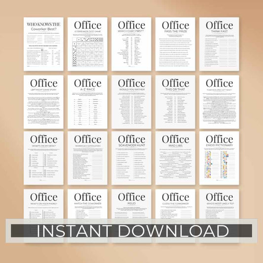 Make your next office event unforgettable with our collection of printable and PowerPoint games. Perfect for in-person teams, remote workers, and everything in between, these ready-to-use games are designed to spark connection, creativity, and lots of laughter in the workplace.